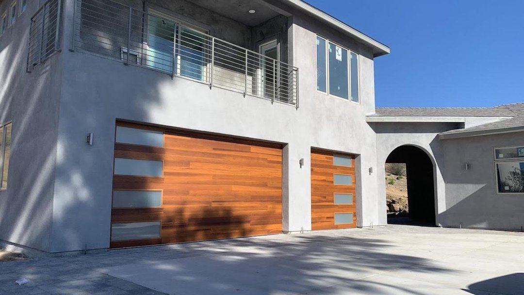 This stunning wood-toned garage door project in Lakewood shows how the right upgrade can completely cha…
